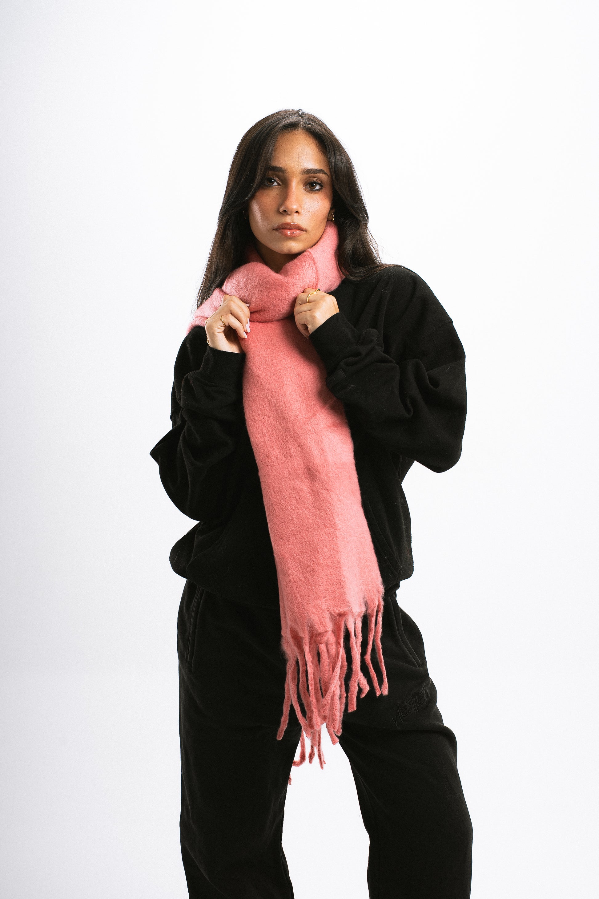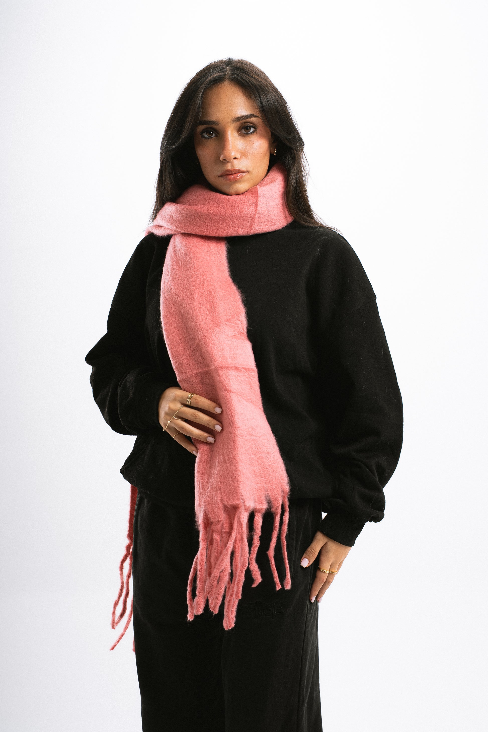 Wrap yourself in warmth this winter with our cozy scarf crafted from soft, plush fabric that feels as good as it looks. Designed to keep you snug through chilly days, it features a clean, minimal look with subtle fringe details for a timeless winter touch. Perfect for layering over any outfit, this scarf combines comfort and style effortlessly, making it your go-to essential for the season.