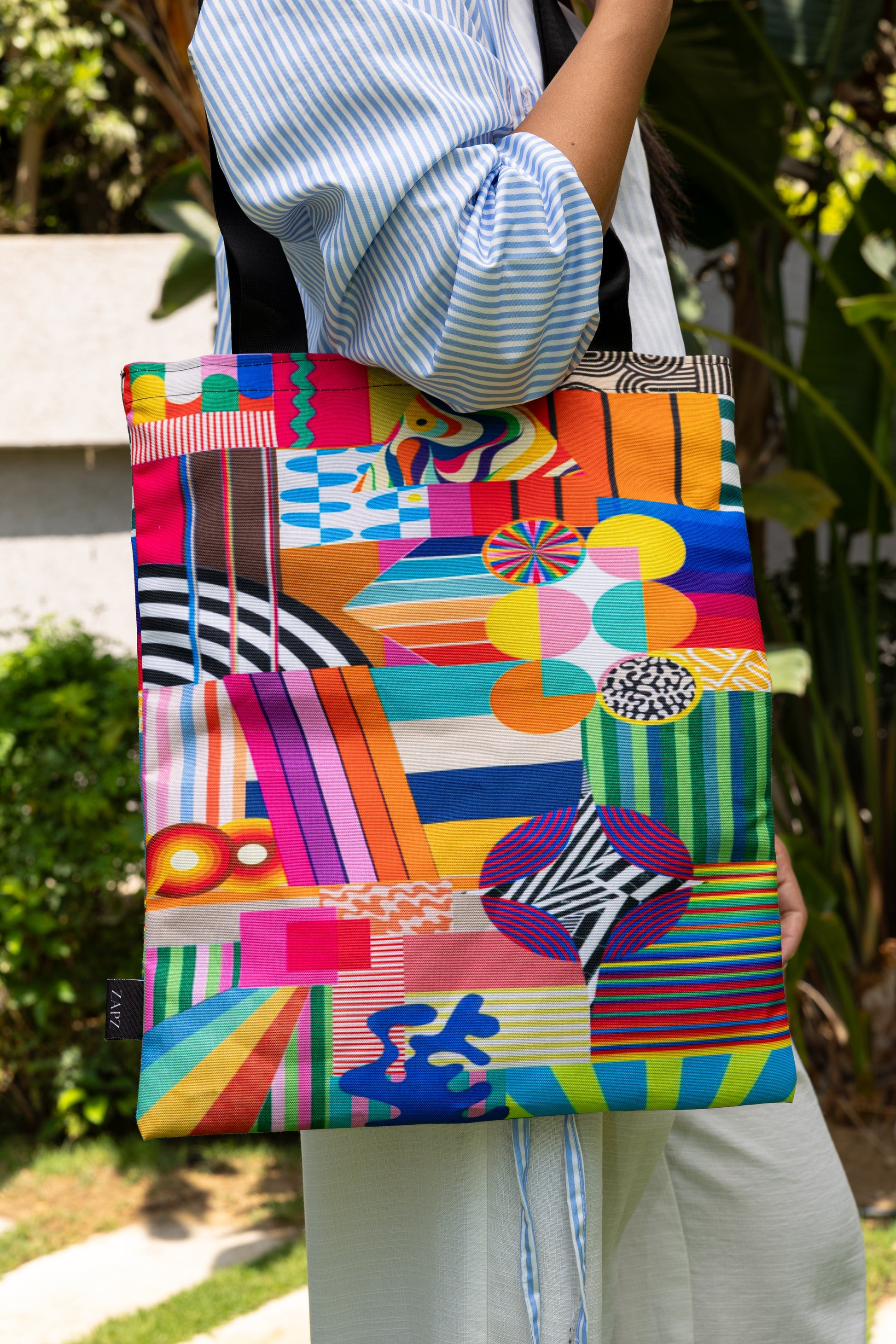 Fun, bold, and built for summer. This all-over print tote features vibrant designs and sturdy black handles. Sized at 40x35cm, it’s spacious enough for all your essentials and includes secure zippers for extra peace of mind. Perfect for beach days, errands, or everyday adventures.